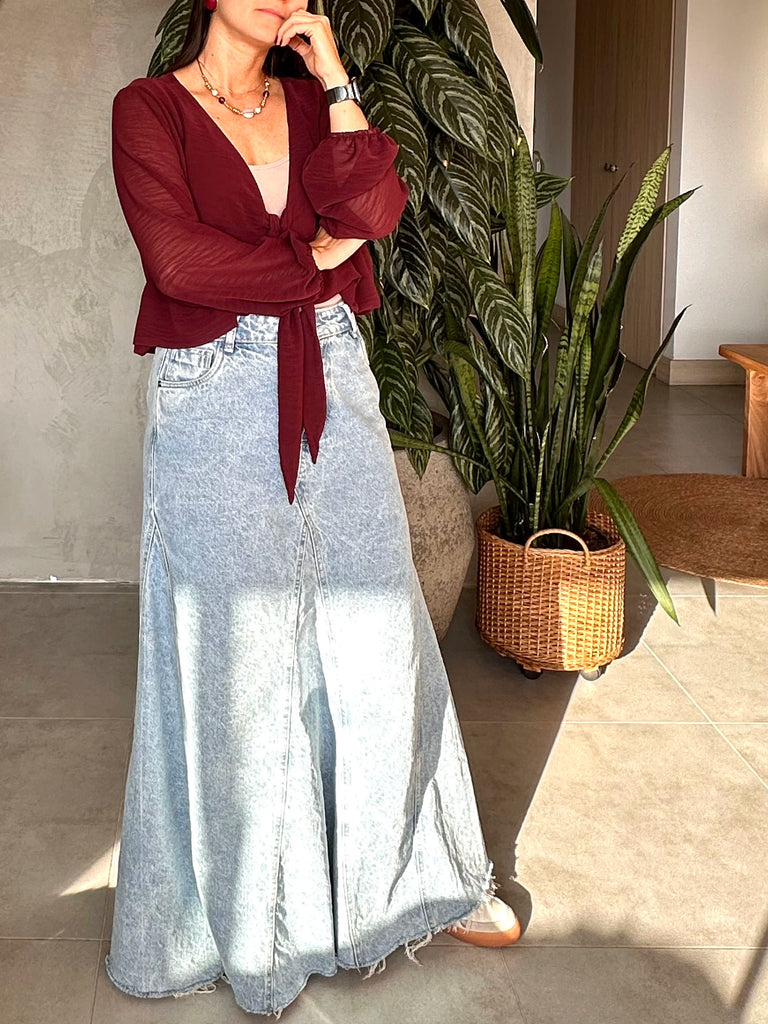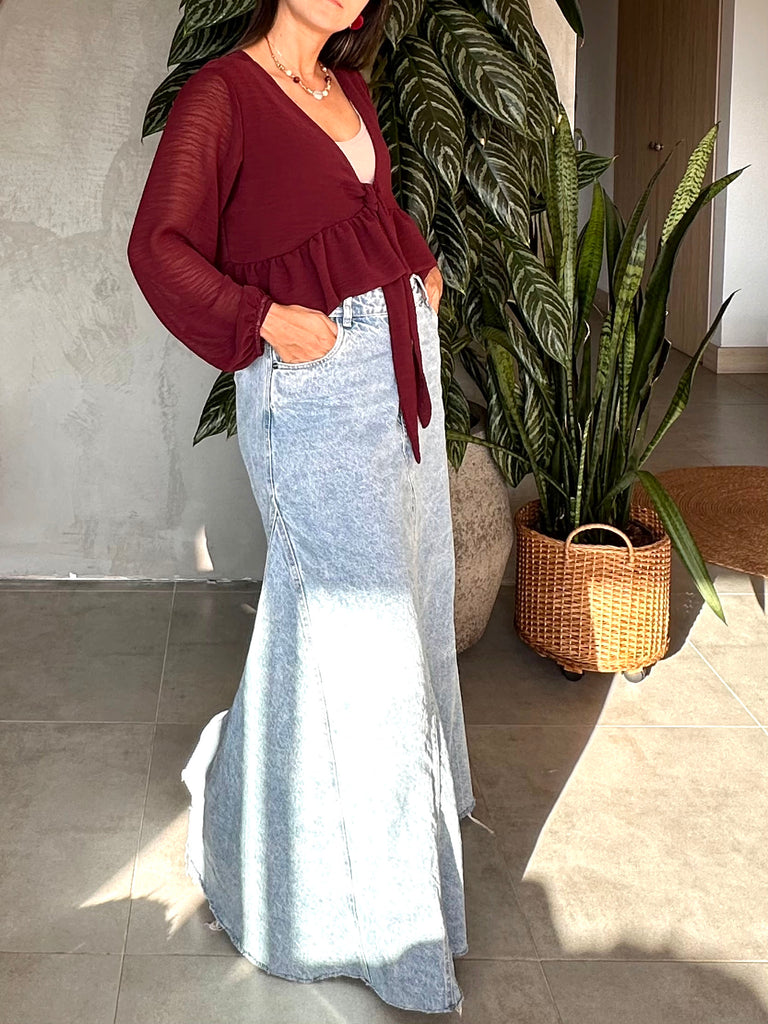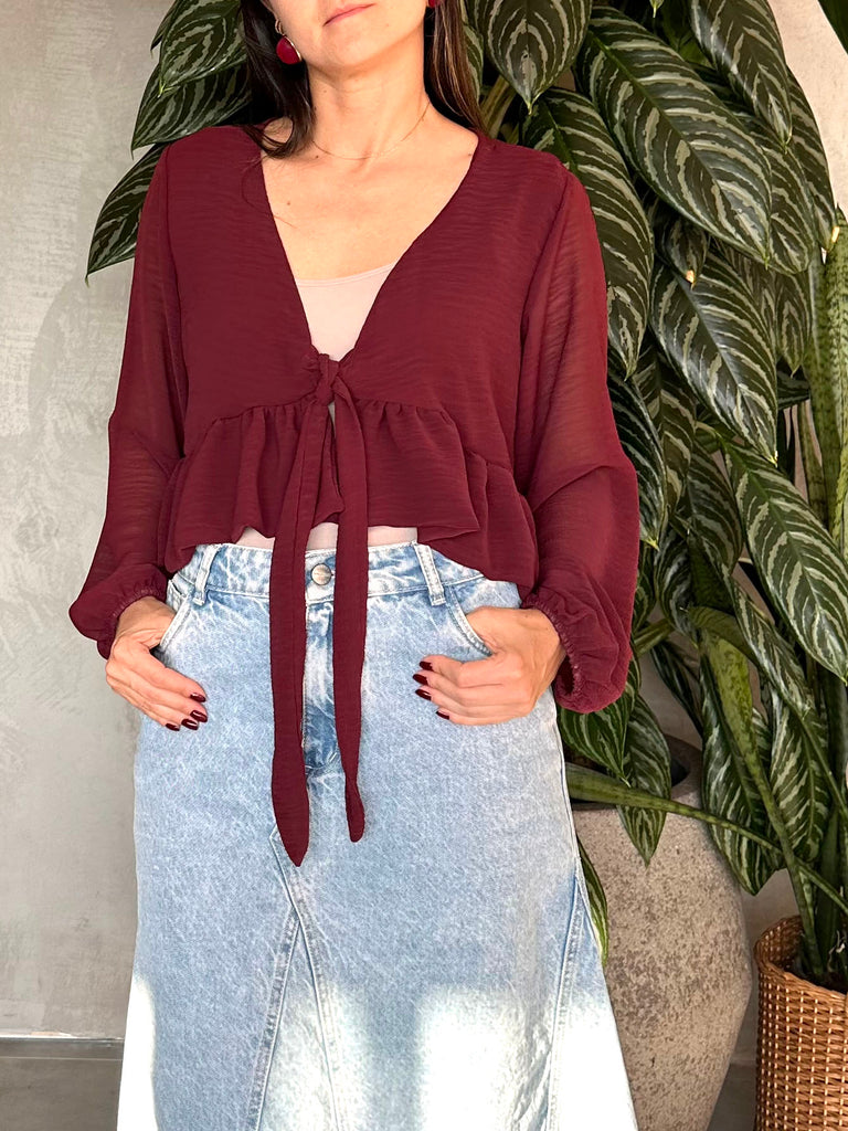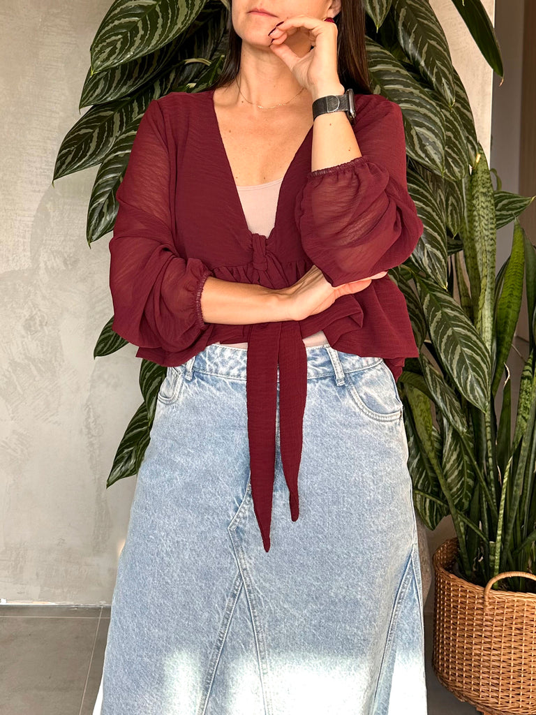 CAMISA TRANSPARENCIA AMARRE VINOTINTO